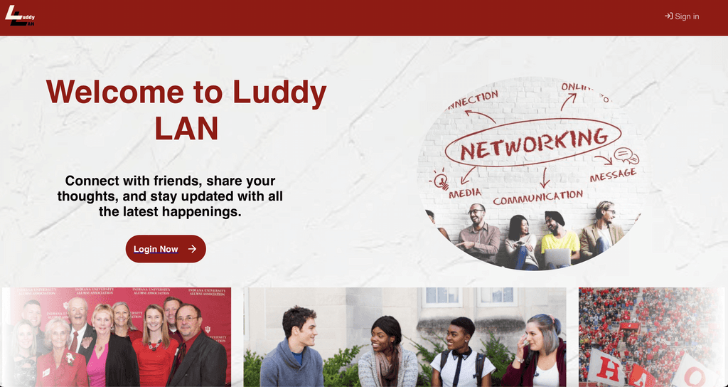 Luddy LAN is a networking platform designed for over 2,000 students at the Luddy School of Informatics. The platform centralizes alumni interactions, facilitates idea-sharing, and provides access to essential resources. Built using React for the frontend and Google Firebase Firestore for the backend, the platform serves as a hub for student engagement and community building.
